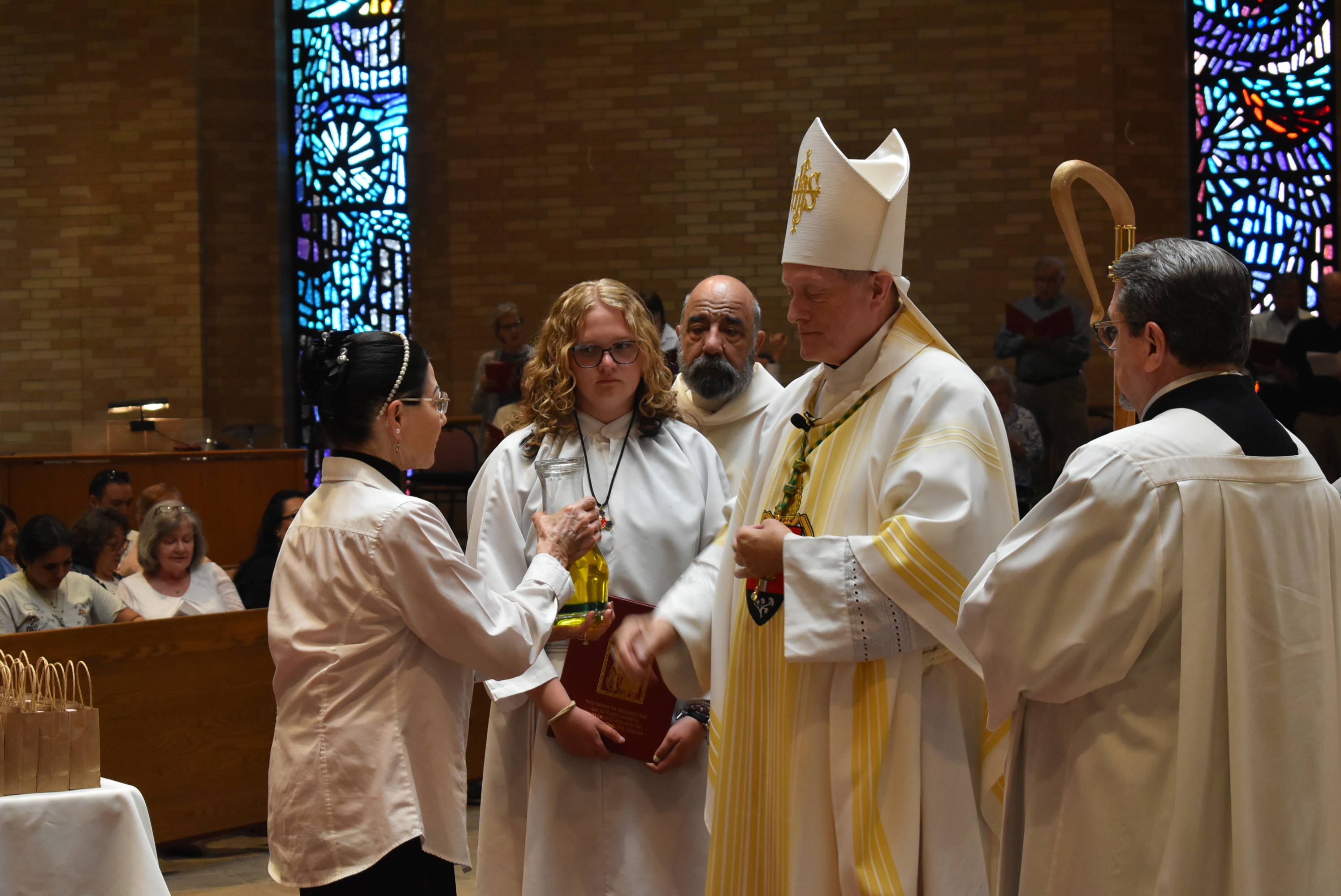 Bishop Coerver blessed the Oil of Catechumens, the Oil of the Infirm and Holy Chrism, all of which will be used in the administration of the sacraments throughout the diocese for the year.
